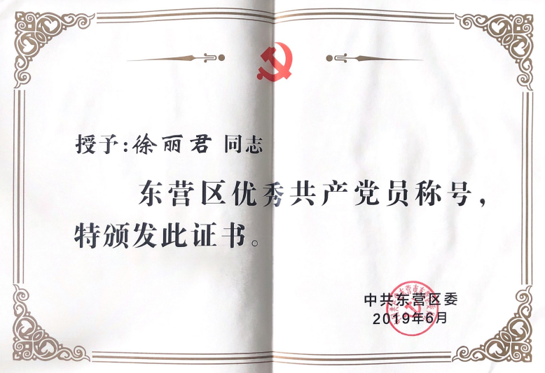 德仕集团研发工程师徐丽君荣获“东营区优秀共产党员”荣誉称号。