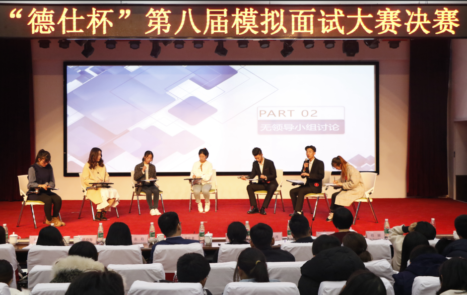 大赛采用淘汰晋级制,分为“职场情景模拟”、“无领导小组讨论”、“个人主题演讲”三个环节,经过紧张激烈的角逐,丁晓雨等10名同学分列一、二、三等奖,同时获得在集团实习的机会。