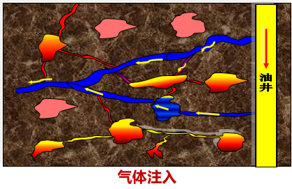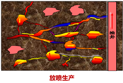 置换出相对构造高部位及微裂缝的剩余油,达到原油增产的目的。